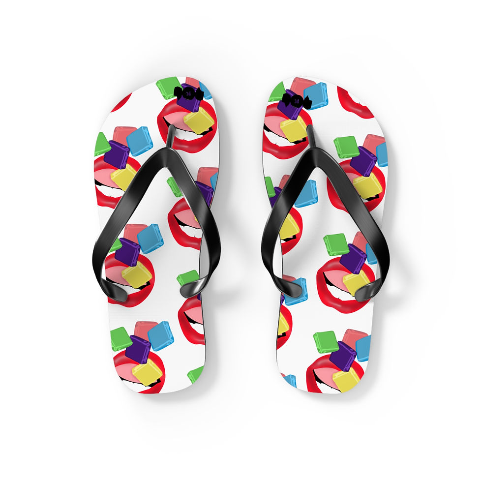 Vibrant Candy/Lip Print Flip Flops, Beach Footwear, Sandals