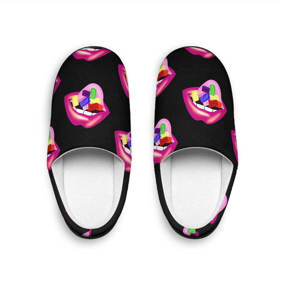 Bubblegum Indoor Slippers, Cute Lip Animation’s Slippers, Candy - Black Slippers