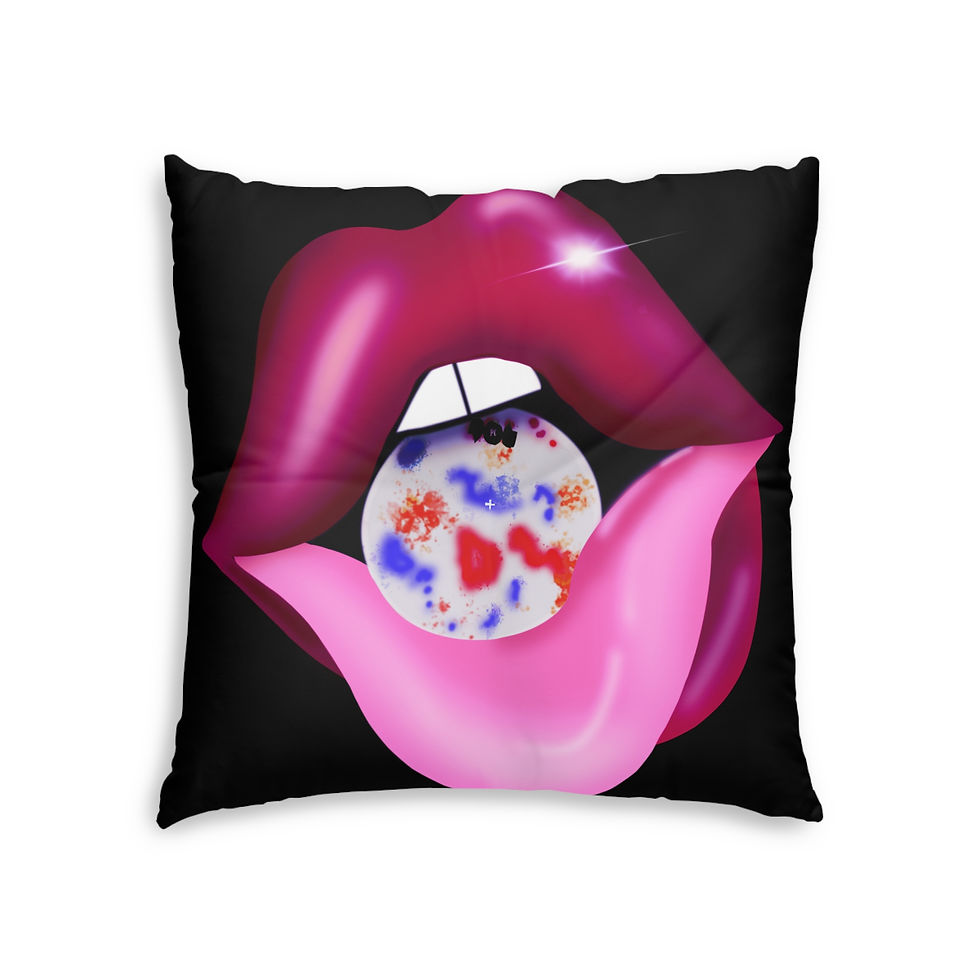 Colorful Taffy Candy / Lip Art- Design Tufted Floor Pillow, Black Couch Cushion